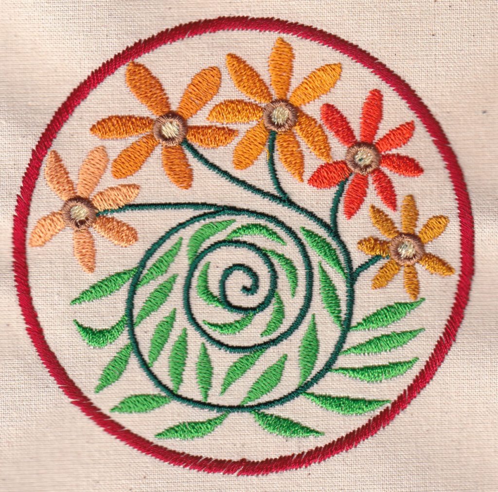 There’s nothing much to explain about this one – it’s pretty much just as it looks. As with last week’s design, it’s digitised with an appliqueed circular background, but you don’t need to add this if you don’t want to – it will be fine if it’s stitched straight on to the backing fabric. And of course you can leave out the circular frame entirely if you like