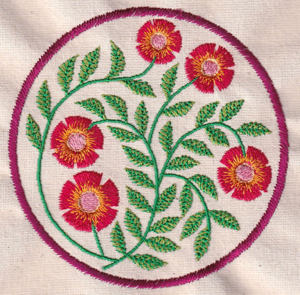 So we’ll start 2026 with a free round design featuring flowers. I have several similar round floral designs which I’ll put up in coming weeks, but this will do to begin with. Here it is, in .pes v.6