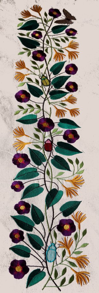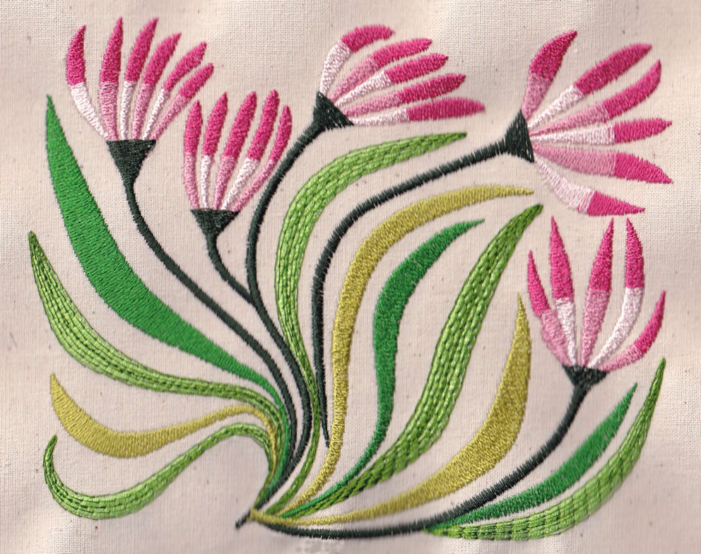 The design is for the 5×8 inch (130 x 180 mm) hoop. And it’s in .pes v.6