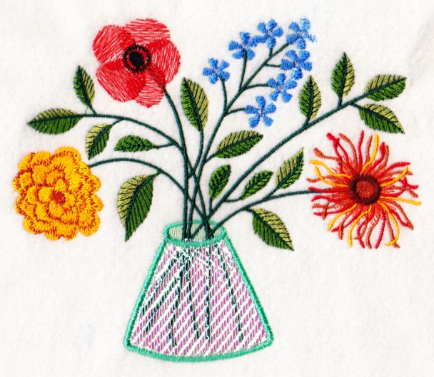 Now – the first part is perfectly straightforward. Colours 1 through 17 are just the flowers, leaves, and the background of the vase.
