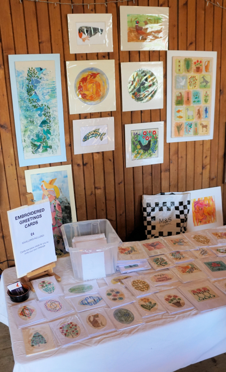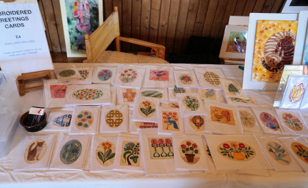 Well, that was certainly a busy couple of weeks! First, I had to prepare things for the craft fair and then set up the stall, and finally sit with it and chat with visitors. We didn’t have a lot of visitors – probably because of the unusual heatwave we’ve been having recently, which seems to have kept people in their nice shady houses. But I didn’t do too badly – in fact I sold a lot more things than I expected to, so I can’t really complain! Rather to my surprise, I sold not only a good number of cards, but also some of the larger pieces  that I’d just put on the wall to provide some colour